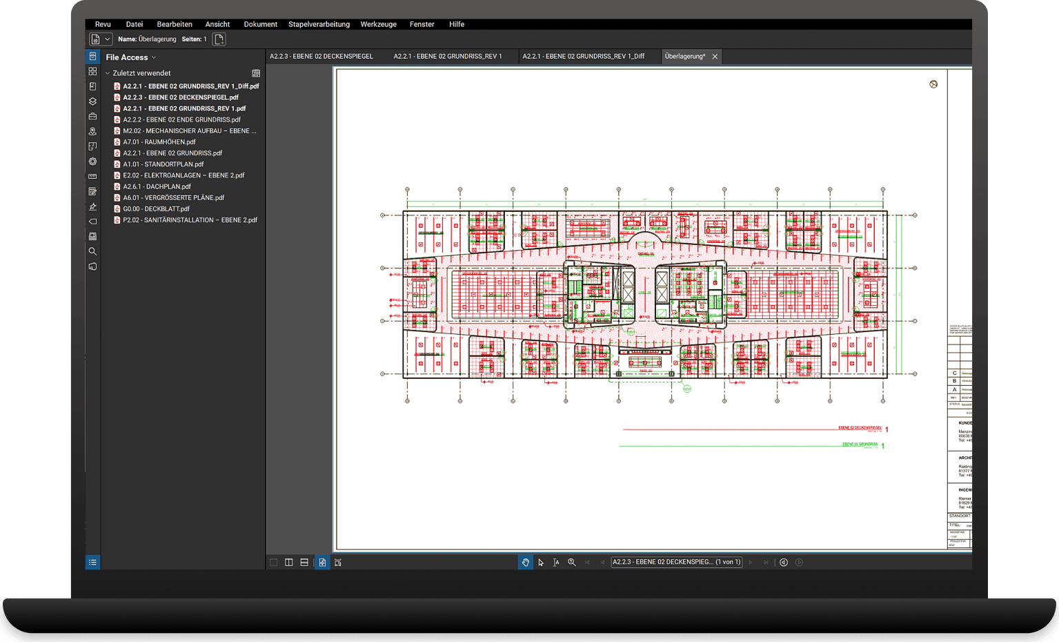 | Stapelvergleich von mehreren Planrevisionen |